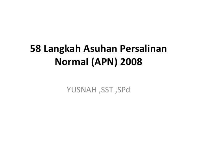 Dekontaminasi sarung tangan dengan cara Mencelupkan tangan kanan yang bersarung tangan ke dalam larutan klorin 0,5%, membuka sarung tangan dalam keadaan terbalik dan merendamnya dalam larutan klorin 0,5% selama 10 menit. Cuci kedua tangan setelah sarung tangan dilepaskan 10. 58 Langkah APN Untuk melakukan asuhan persalinan normal dirumuskan 58 langkah asuhan persalinan normal sebagai berikut: 1. Mendengar & Melihat Adanya Tanda Persalinan Kala Dua.